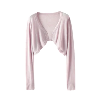 2025 Factory Wholesale Custom Casual Long Sleeve Crew Neck Cropped Cardigan Sweater Women's Single Breasted Short Sweater