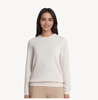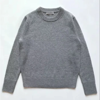 Girl's Cashmere Flat Knit Sweater Women's Round Neck Jacquard Pullover Wool Knitwear Machine Knitwear for Winter and Fall