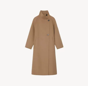 NARI Top Luxury Women's Winter Cashmere Fabric Coat Classic Pocket Buttons Full-Length Windproof Warm Coat for Winter and Autumn